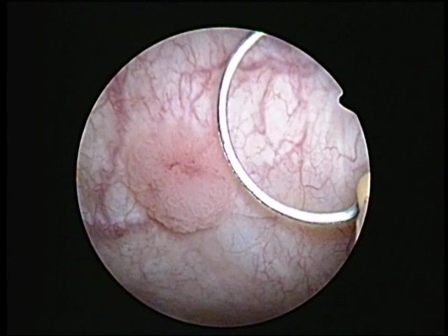Pour les polypes superficiels, la résection transuréthrale de vessie ou RTUV permet l’exérèse du polype